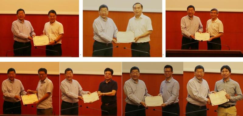 会上宣读了纳米科技协同创新中心副主任人员调整、各专业中心主任及执行主任的聘任名单。经中心管理委员会批准,增聘吴鹏为中心副主任,聘任张晓宏、陈林森、廖良生、路建美、刘庄为各专业中心主任,聘任乔文、孙宝全、李华、程亮、何乐为各专业中心执行主任。协同中心主任李述汤院士依次为受聘人员颁发聘书。