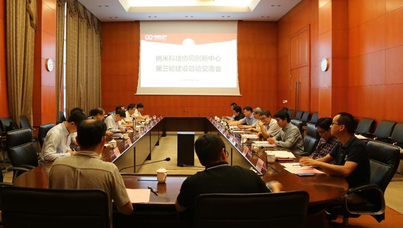 10月15日,江苏高校纳米科技协同创新中心(以下简称“协同中心”)第三期建设启动交流会顺利召开。协同中心主任李述汤院士、协同中心常务副主任张晓宏副校长、校“2011计划”办公室主任仇国阳、副主任董晓惠、协同中心副主任、各专业中心负责人和相关代表出席了此次会议。会议由张晓宏副校长主持。