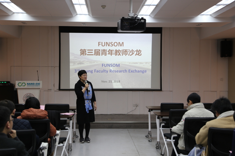 上午八点半,迟力峰教授向参会人员致欢迎辞。她首先对各位青年教师的积极参与表示了高度的肯定,强调了青年教师的成长对FUNSOM未来发展的重要性,并表示希望大家能通过这次沙龙,增进彼此了解,促进相互合作及共同成长。
