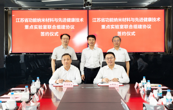 8月7日上午,苏州大学代表团一行前往苏州恒瑞医疗器械有限公司考察交流并签署联合组建江苏省功能纳米材料与先进健康技术重点实验室协议。苏州大学校长张桥,副校长张正彪;恒瑞医疗董事长戴洪斌,总经理谷可军,副总经理张祥满、赵苗苗以及校长办公室、科学技术研究院、纳米科学技术学院,恒瑞苏州研发中心、行政和政府事务等部门负责同志共同出席活动。