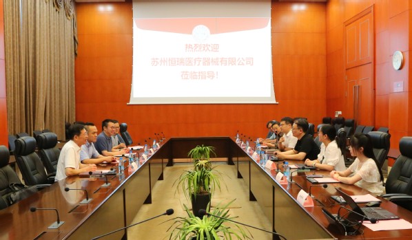 为落实近日苏州大学与苏州恒瑞医疗器械有限公司签署的省重点实验室共建协议精神,8月13日上午苏州恒瑞医疗器械有限公司总经理谷可军、副总经理张祥满、苏州研发中心负责人徐孙希、行政部总监高兰军等莅临我院考察交流。我院党委书记吴鹏、执行院长刘庄、副院长彭睿及教师代表参加交流座谈。会议由吴鹏书记主持。