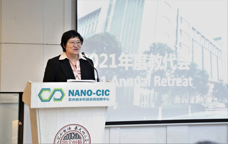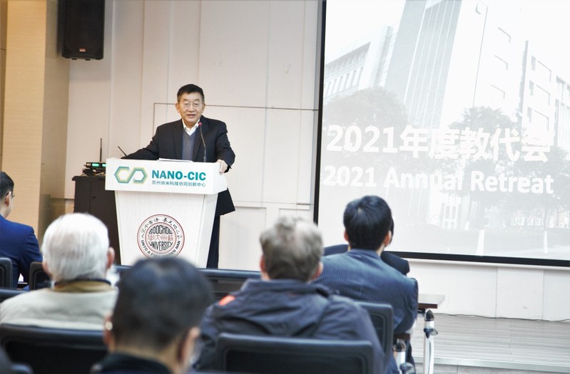 2021年12月19日下午两点,2021年度功能纳米与软物质研究院(FUNSOM)、纳米科学技术学院(CNST)教代会暨退思会(Retreat)在909楼B厅会议室如期举行。院长李述汤院士、迟力峰院士、张晓宏教授、廖良生教授等全体中外籍教职人员出席会议,会议由学院党委书记吴鹏主持。