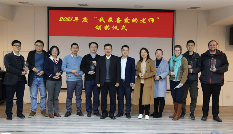 各项工作汇报结束后,举行了2021年度“我最喜爱的老师”颁奖仪式。该奖项由全体学生匿名投票产生,旨在鼓励和支持一线优秀教学工作者。本年度获得该奖项的老师有:Anthony Little、Sarah Dorsey、Sherry Wang、Alexander Brandt、王璐、程涛、王穗东、何乐、刘庄、黄慧、徐建龙共11位老师,李院士亲自为大家颁奖并合影。