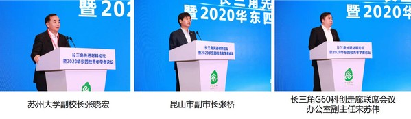 11月14日上午,由我院主办、昆山市工业技术研究院承办的长三角先进材料论坛暨2020华东四校青年学者论坛在昆山开幕。来自苏州大学、复旦大学、浙江大学、南京大学、中国科学技术大学等高校先进材料领域的80多位专家学者及10多位昆山企业家代表齐聚一堂,共同探讨新材料领域的新技术及未来发展趋势。中国科学院院士李述汤、苏州大学副校长张晓宏、昆山市副市长张桥、长三角G60科创走廊联席会议办公室副主任宋苏伟出席了开幕式,“长三角先进材料成果转移转化示范基地”顺利揭牌。