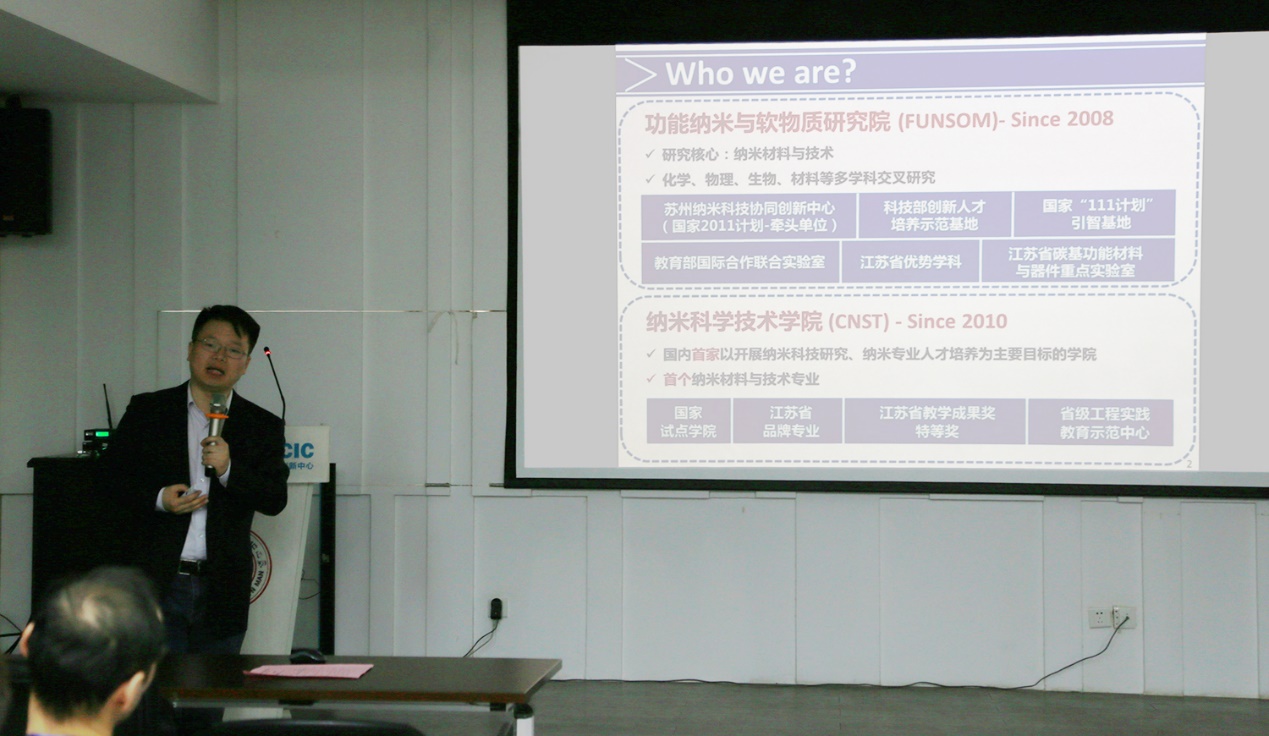 2018年4月9日到11日,苏州大学2018年国际青年学者东吴论坛FUNSOM分论坛在我院成功召开。我院特别邀请了来自加州理工学院的程涛博士、加州大学洛杉矶分校的费慧龙博士、美国加州大学伯克利分校的卢丹勇博士、日本国立材料研究所的帅晶博士、日本国立材料研究所的汤静博士、新加坡科技局材料研究所的王涛博士、马克斯普朗克聚合物研究所的王小野博士、伯克利国家实验室的张亮博士以及慕尼黑工业大学的章一奇博士共9位国际青年学者前来进行学术交流。我院全体领导班子成员、多名教授和学生都来参加了此次论坛。
