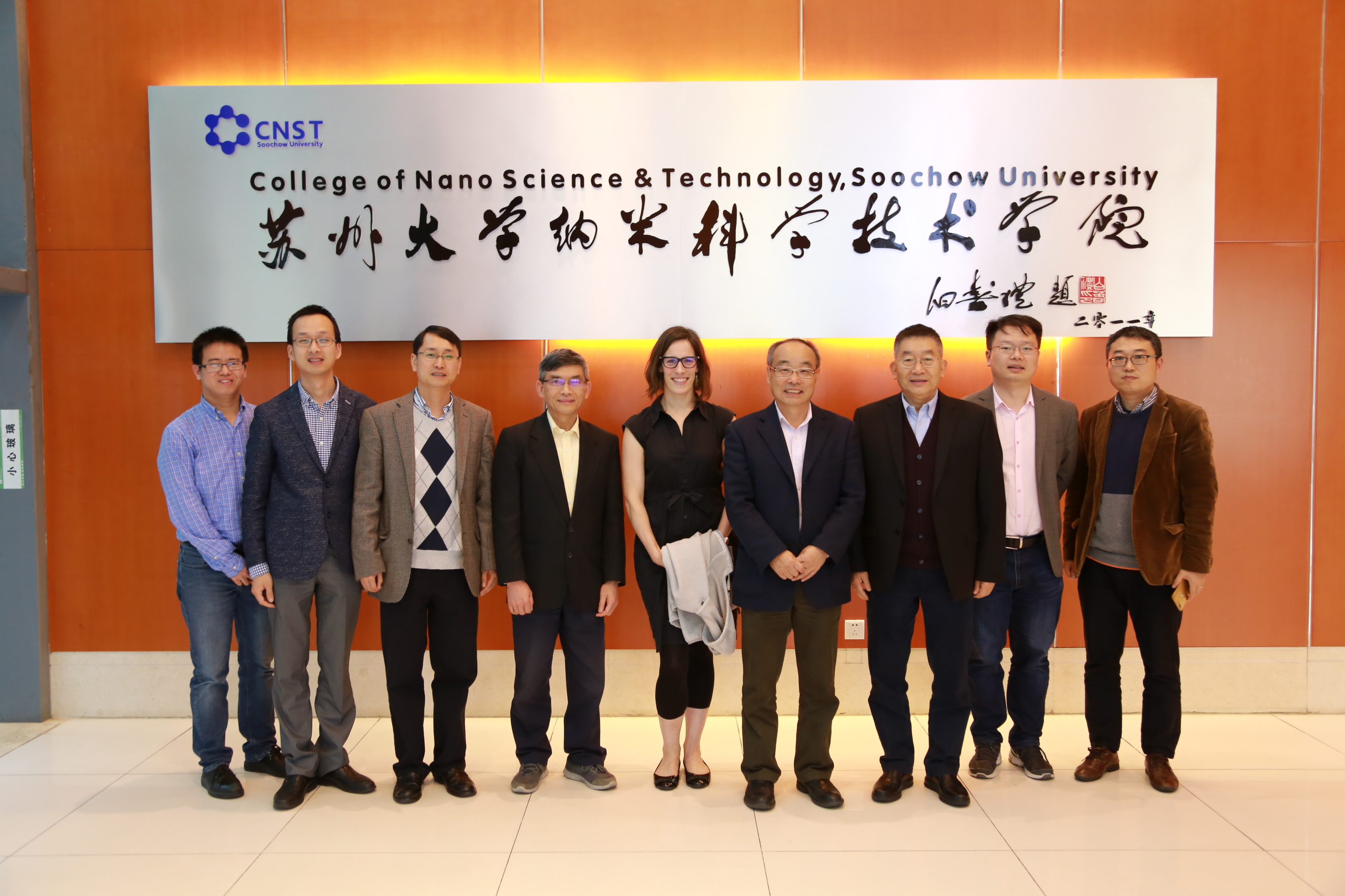 Marina Soares e Silva博士和张泽院士在我院作了题为《Leading peer review and publishing in the XXI century - introducing Materials Today Nano》的学术报告,并和我院师生热情互动问答。随后,大家参加了座谈会。座谈会上,廖良生教授简要介绍了我院的发展历程,并从科学研究、人才培养、协同创新和产业建设四个方面全面介绍了研究院和学院,加深了客人们对我院的了解。紧接着,刘庄教授、李彦光教授和廖良生教授先后向张泽院士一行汇报了纳米生物方向、纳米催化方向和有机光电方向的工作;孙宝全教授和揭建胜教授分别向张泽院士一行汇报了个人的研究工作。Marina Soares e Silva博士对大家的研究工作表示赞赏,她希望FUNSOM的学者们能够多多支持Materials Today Nano期刊,双方通力合作促进科研事业更上一层楼。张泽院士对大家的研究工作表示高度的认可,希望几位学者能够不忘初心,继续发扬艰苦奋斗的科研精神,进一步做好科研工作。