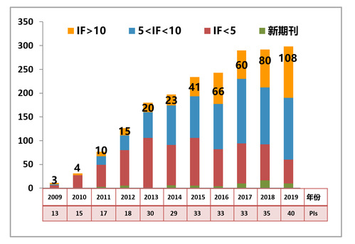 ● 2019年以FUNSOM为第一单位发表文章299篇,其中IF >10的论文108篇。2008年至今,累计以FUNSOM为第一单位发表学术论文1983篇,其中IF >10的论文438篇。