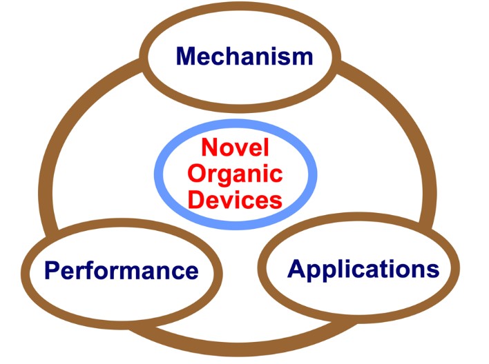 围绕有机半导体新型光电器件(如下图所示),探索其物理机制、性能提升方案以及在神经形态器件与系统、健康监护、环境监测等领域中的应用。