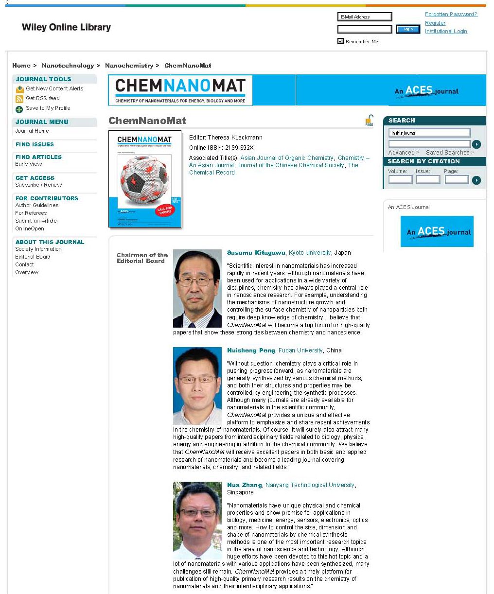 《New Journal of Physics》始发于1998年,由德国物理学会和物理研究所共同出版发行,主要出版物理领域以及交叉学科领域的学术成果,是IOP Publishing旗下物理领域的重要国际学术期刊之一。在Thomson Reuters公司公布的最新期刊引证报告(JCR)中,《New Journal of Physics》的影响因子为3.671。《ChemNanoMat》由亚洲化学编辑学会(Asian Chemical Editorial Society, ACES)于2014年出版发行,涵盖纳米材料化学领域及其他相关跨学科领域。该杂志发行团队与德国《Angewandte Chemie》及《Advanced Materials》杂志团队保持紧密合作关系,同时也是《Chemistry - An Asian Journal》的姐妹期刊。