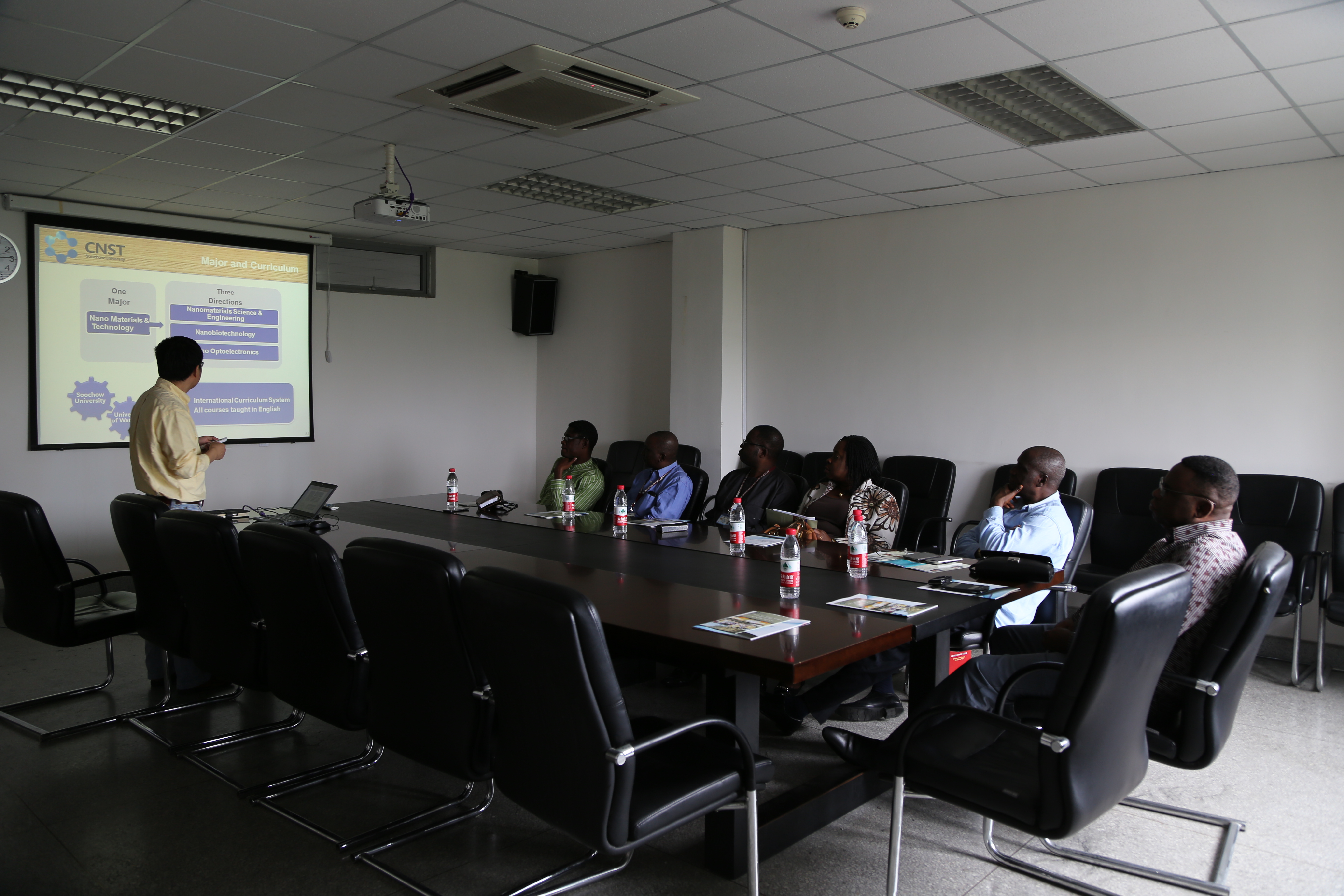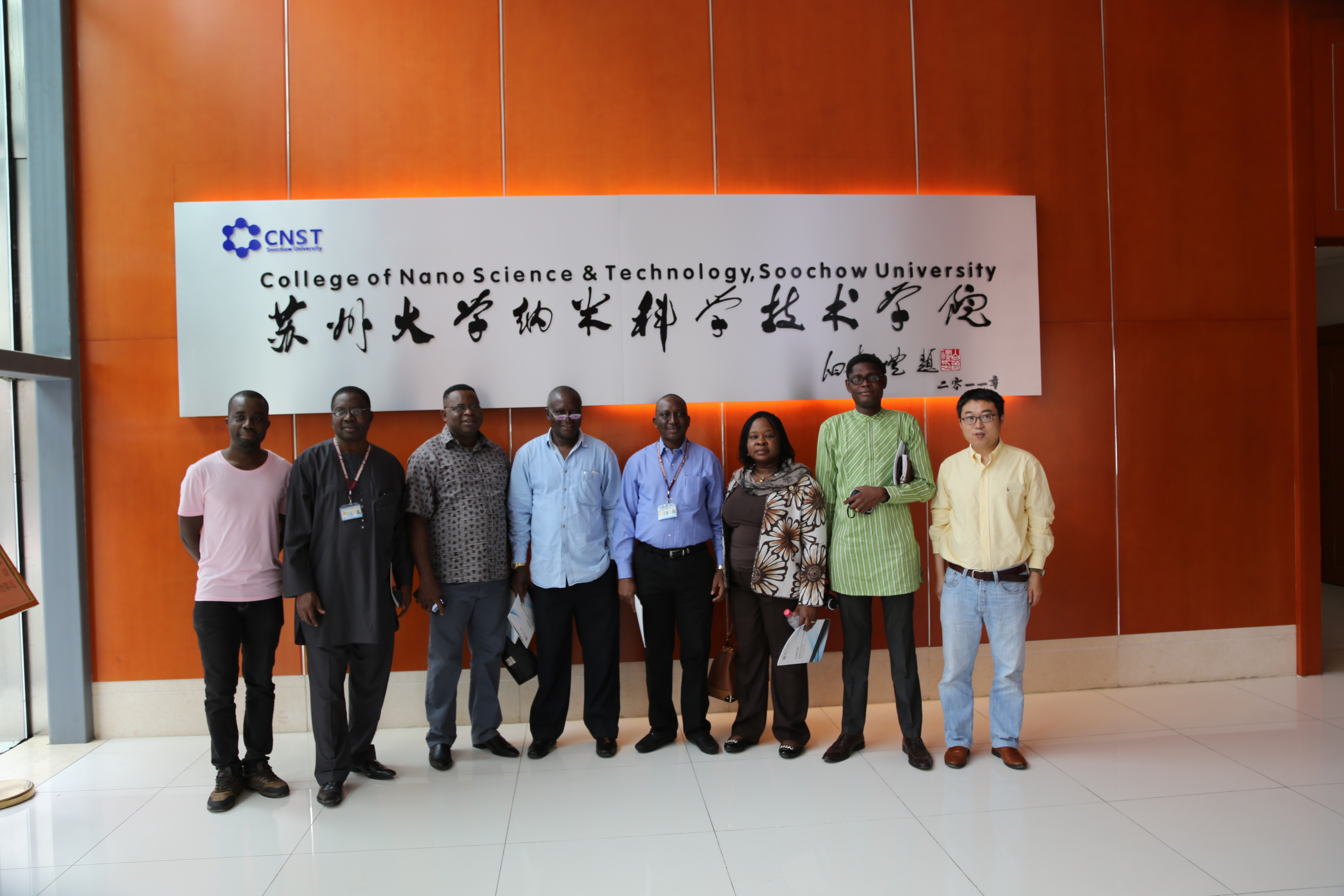 2015年6月3日上午,尼日利亚哥拉斯大学代表团来访我院,访问团由该校副校长Duro Oni教授带队,团员包括该校教务长Taiwo Folasade Ipaye博士、研究生院主任Lucian Obinnaya Chukwu教授、学生处处长Olukayode Oladipo Amund教授等其他职能部门领导共5人。我院副院长孙宝全教授代表学院对他们的到来表示了热烈地欢迎,并简单介绍了功能纳米与软物质研究院、纳米科学技术学院和苏州纳米科技协同创新中心的基本情况。座谈结束后,在孙宝全教授等人的陪同下,代表团还参观了我院实验室以及展厅,并与该校在我院的交流生进行了亲切地交谈。