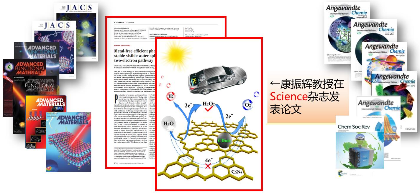 论文与奖项:七年来,研究院共以FUNSOM为第一通讯单位发表学术论文709篇,总引用超13000次。大量高水平研究成果在Science, Nature Comm., Adv. Mater., J. Am. Chem. Soc., Angew. Chem. Int. Edit., Nano. Lett., ACS Nano, Adv. Funct. Mater.等国际材料、化学领域顶级期刊发表。康振辉教授课题组在高效光催化分解水方面的研究在Science上发表,这是FUNSOM也是苏州大学首次在该杂志发表自然科学类学术论文。两篇论文分别入选2011年和2013年“中国百篇最具影响国际学术论文”。多名教师担任ACS Nano, Biomaterials, Appl. Phys. Lett.等国际著名学术期刊副主编。另外,研究院核心成员共获得国家自然科学奖二等奖3项、中国化学会青年化学奖2项、寻找青年科学之星材料科学银奖2项等。