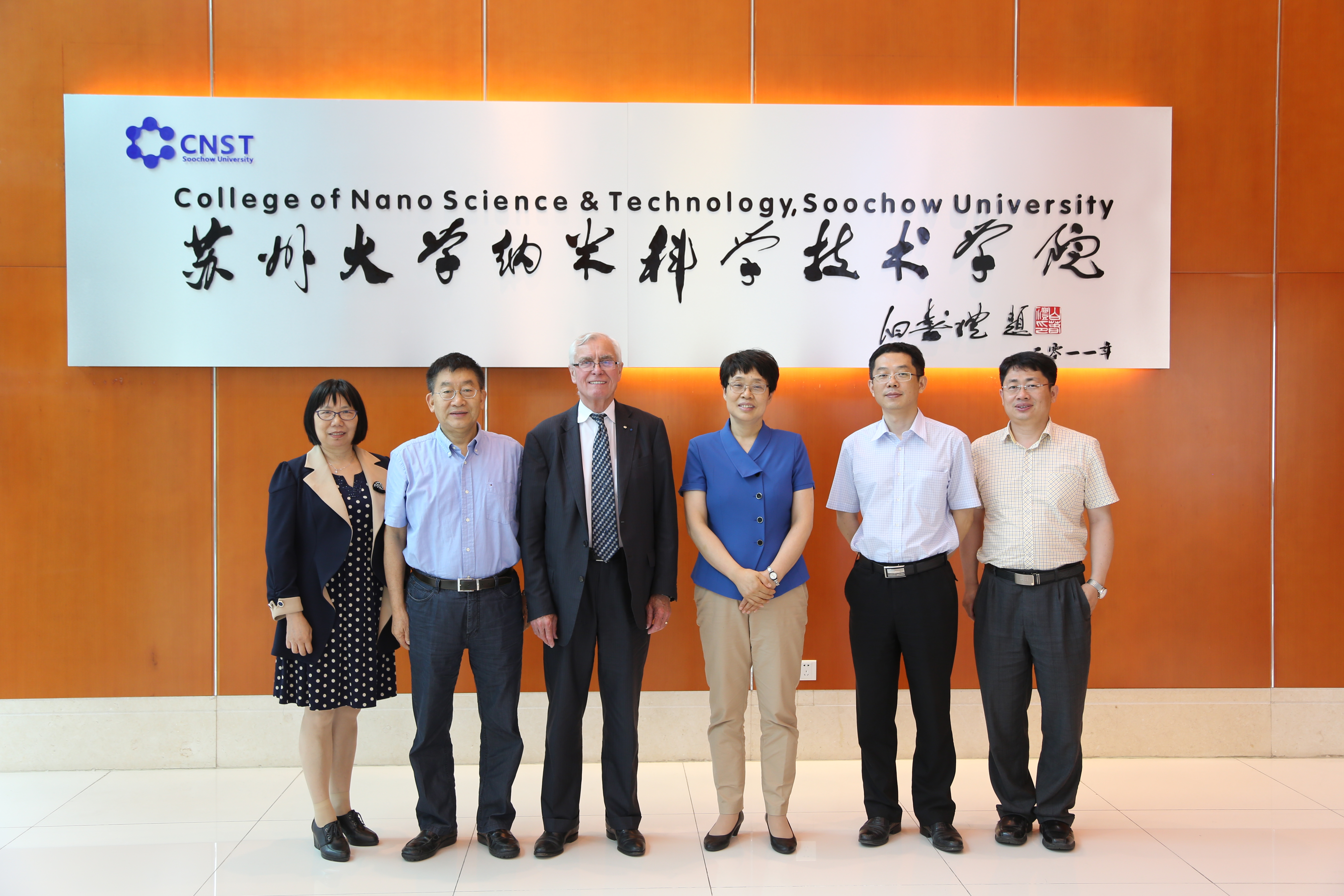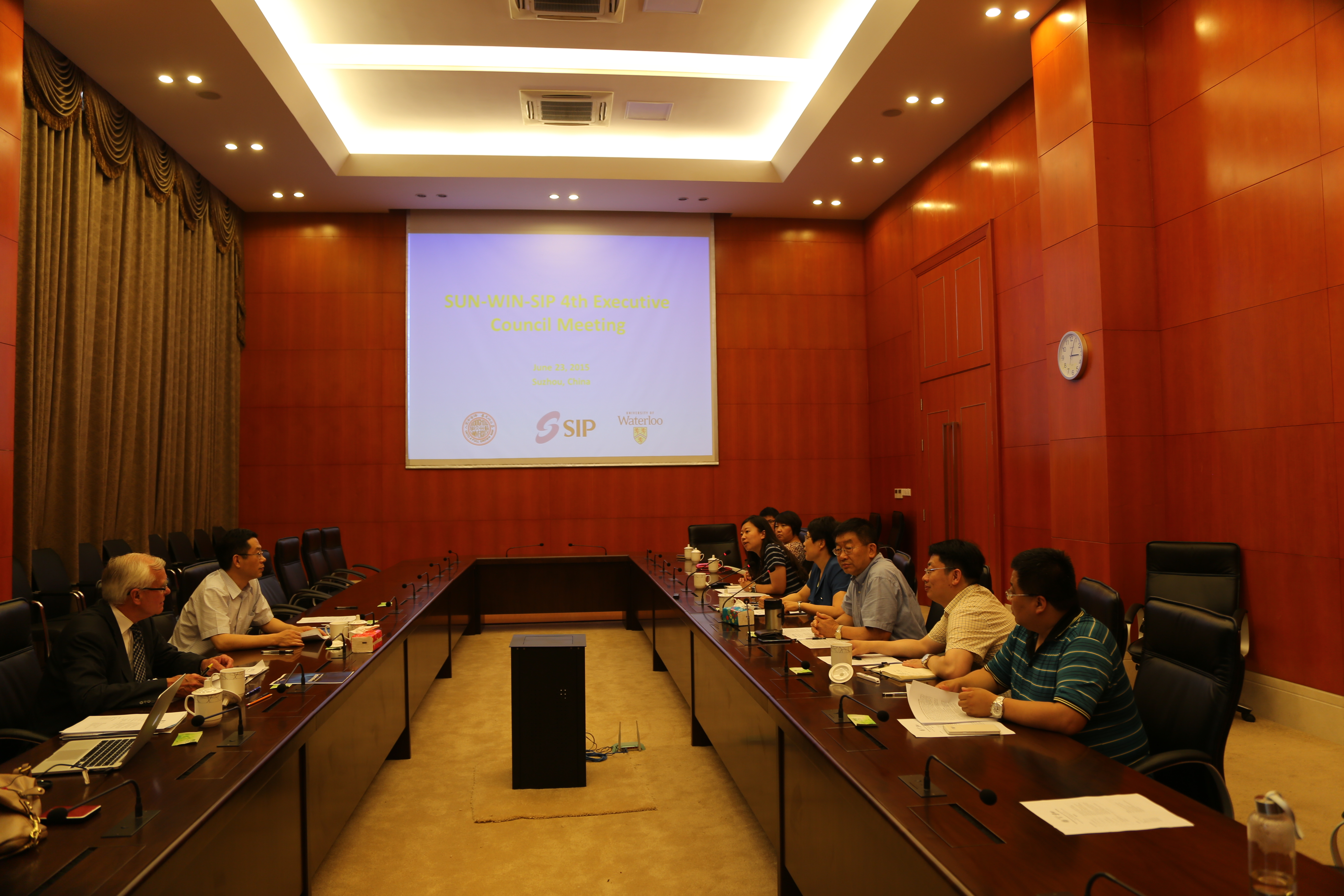 2015年6月23日,苏州大学-滑铁卢大学-苏州工业园区联合办学和科研协作第四届理事会在苏州大学独墅湖校区909号楼A厅会议室成功召开。滑铁卢大学纳米技术研究院执行院长Arthur Carty教授,苏州工业园区科技局副局长虞吉强,苏州大学副校长路建美教授,材化部潘勤敏教授,纳米学院院长李述汤院士、副院长孙旭辉教授等出席了会议。会议由李述汤院士主持。