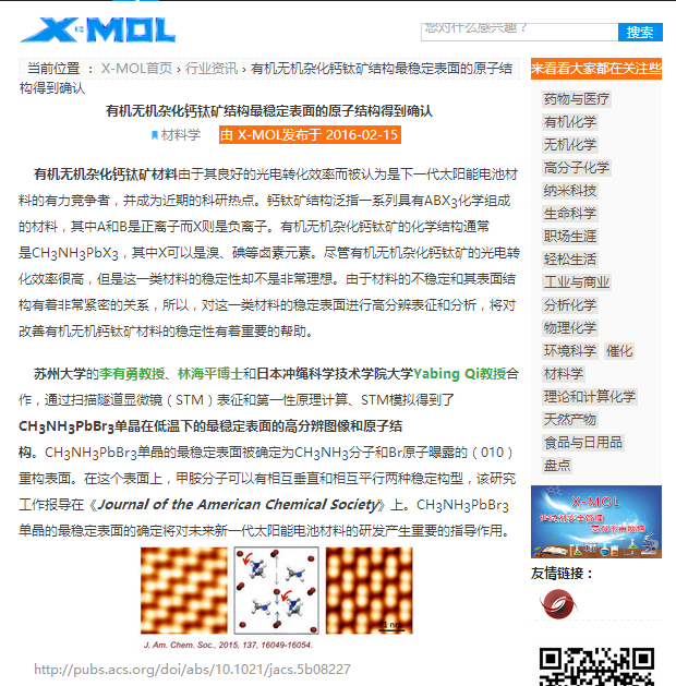 原文标题:Real-Space Imaging of the Atomic Structure of Organic–Inorganic Perovskite