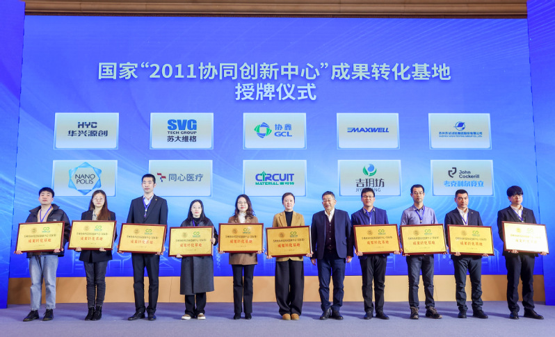 苏州华兴源创科技股份有限公司、苏大维格科技集团股份公司、协鑫集团控股有限公司、迈为科技股份有限公司等10家公司被授牌为“国家‘2011协同创新中心’成果转化基地”,由协同创新中心主任李述汤院士颁发授牌。