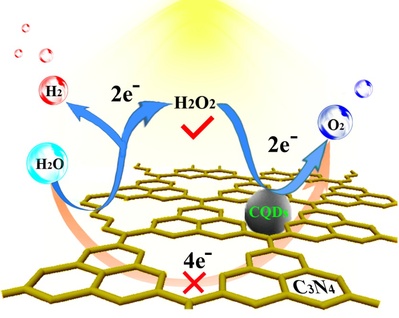 图1 碳纳米点-氮化碳纳米复合物在可见光驱动下分解水的反应机理图。