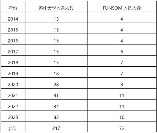 截至目前,我院已累计72人次入选“中国高被引学者”,为提升学校的学术影响力、优势学科建设贡献了一份重要力量。2014-2023年苏州大学/我院入选中国高被引学者统计如下: