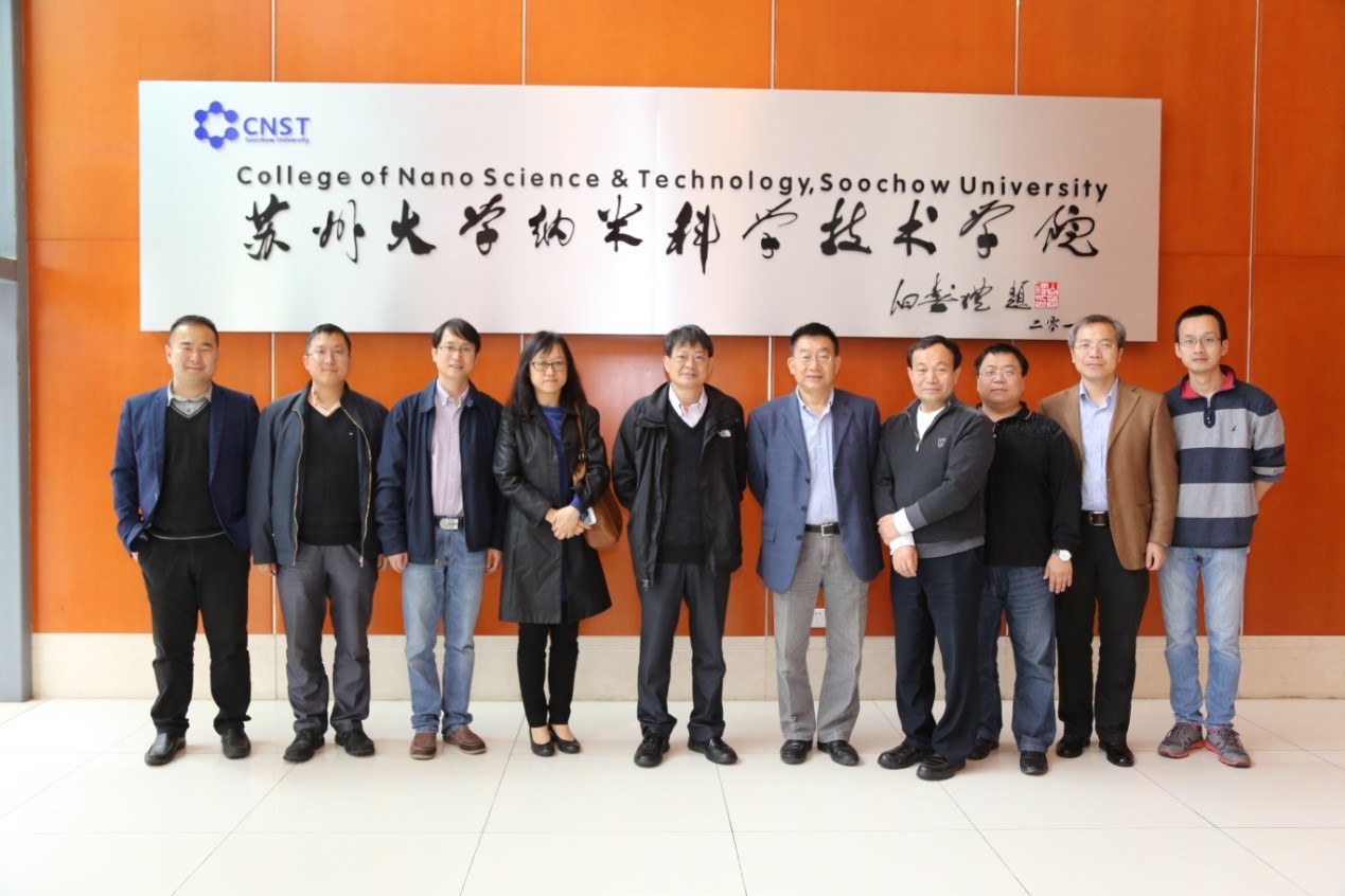 在李院士的陪同下,高院士和俞院士参观了我院实验室,李院士细致介绍了我院的发展成果和办学特色。随后在910楼508会议室,高院士和俞院士与我院相关研究人员进行了细致、亲切的座谈交流。院长助理揭建胜教授通过详实的数据,向两位院士详细介绍了功能纳米与软物质研究院、纳米科学技术学院和苏州纳米科技协同创新中心的发展与现状。两位院士也认真听取了我院揭建胜教授、李彦光教授、康振辉教授、李青副教授分别就各自研究领域的汇报,提出了中肯的意见和建议。高院士和俞院士高度评价了我院近年来在各方面所取得的成果,并就相关研究领域和与会人员进行了深入交流。