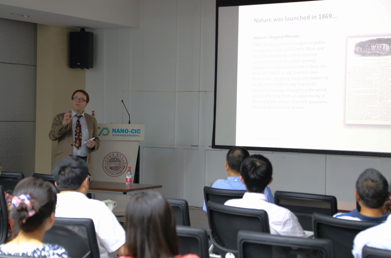 Karl来访期间,以“Inside Nature:The Editorial Process Explained”为主题,为各位师生介绍了Nature期刊的历史与发展趋势,详细的介绍了顶级论文录用的流程与标准。