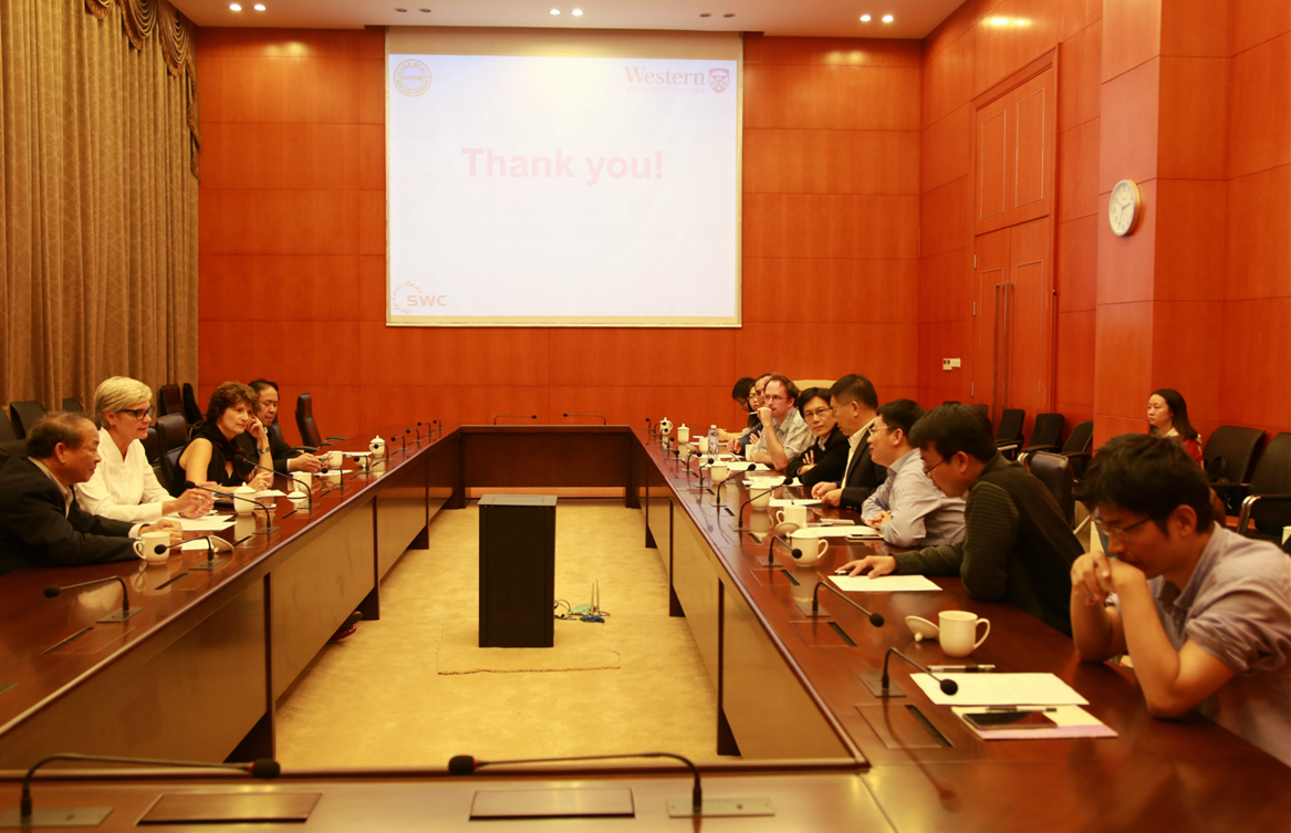 会议期间, 西安大略大学Janice Deakin副校长、Tsun-kong Sham教授分表代表西安大略大学及同步辐射中心发表了讲话,介绍了近期发展情况。我院孙旭辉副院长简要介绍了FUNSOM、CNST及协同中心的发展历程,并重点介绍了同步辐射中心自建设以来的成果。介绍结束后,双方就国际合作项目展开了讨论,西安大略大学代表团对我院科研成果高度评价,并表示了对进一步深入开展国际合作项目的兴趣。
