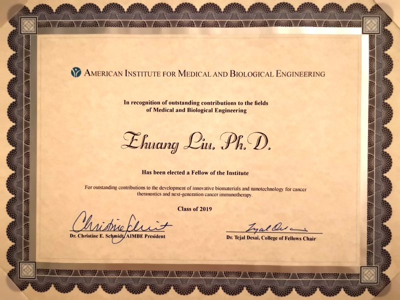 当地时间2019年3月25日,美国医学与生物工程院(American Institute for Medical and Biological Engineering,简写AIMBE)第28届年会在美国华盛顿国家科学院(National Academy of Sciences)举行,会上为新当选的Fellow举行了授聘仪式。经过提名、评审、选举等流程,我院刘庄教授顺利当选美国医学与生物工程院Fellow,在此谨向刘庄教授表示热烈祝贺!