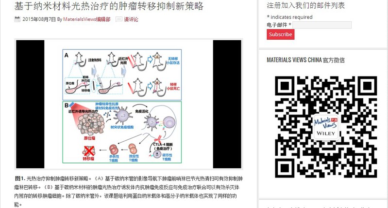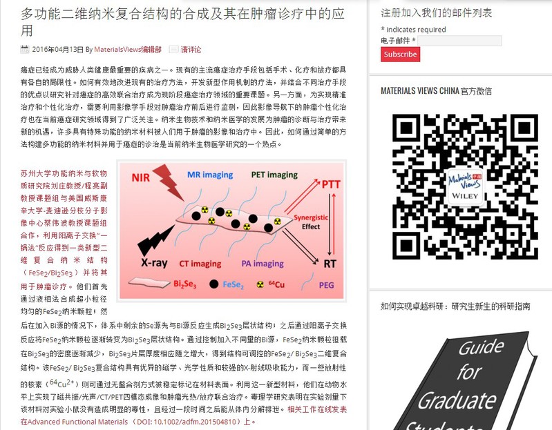 近日,刘庄教授课题组多项发表在Advanced Functional Materials、Advanced Materials等杂志上的科研成果被Materials Views China报道。
