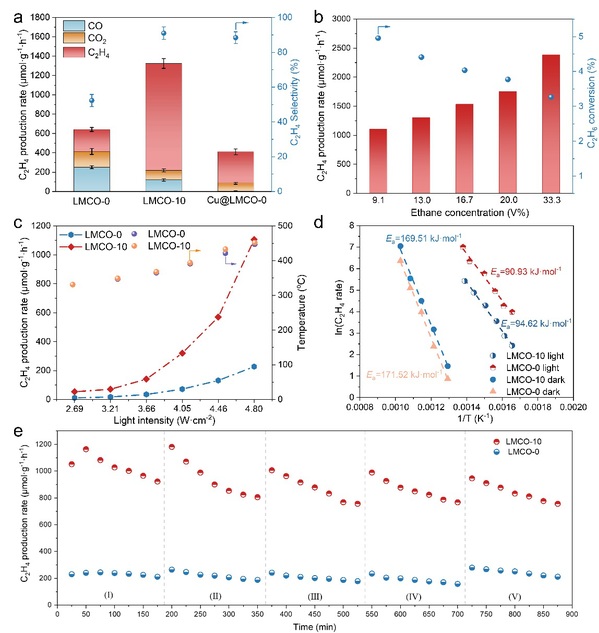 文章题目:Ethylene production via photocatalytic dehydrogenation of ethane using LaMn1−xCuxO3