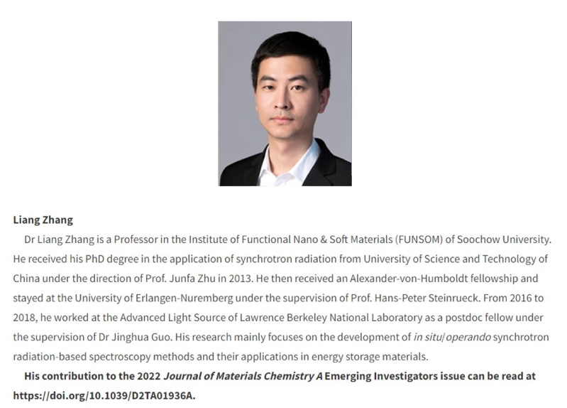 近日,英国皇家化学会材料化学领域期刊 Journal of Materials Chemistry A(JMCA)发布了2022年度Emerging Investigators 专刊,我院张亮教授的研究成果入选其中,获评为2022 JMCA Emerging Investigators 。在此谨向张亮教授表示热烈祝贺!