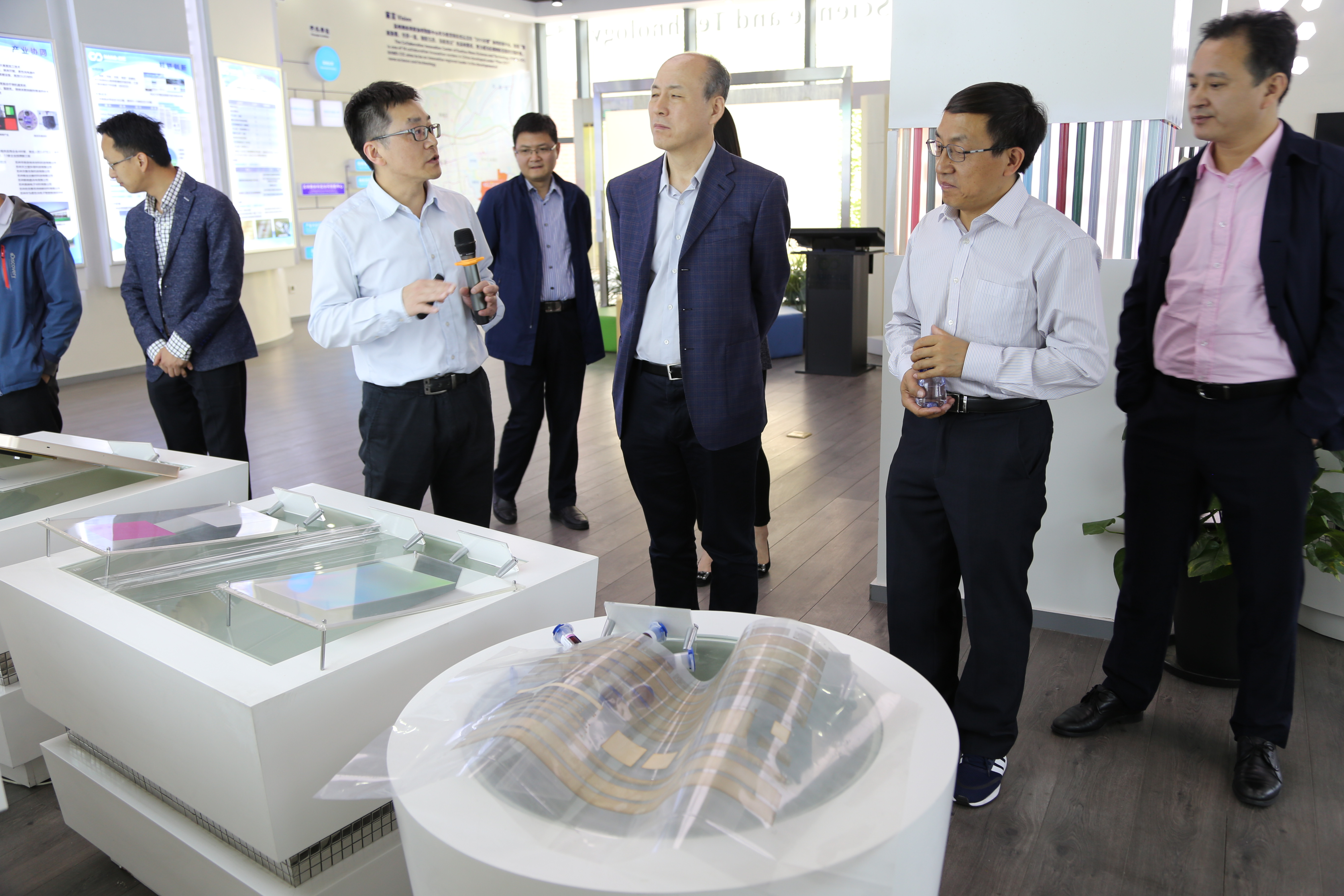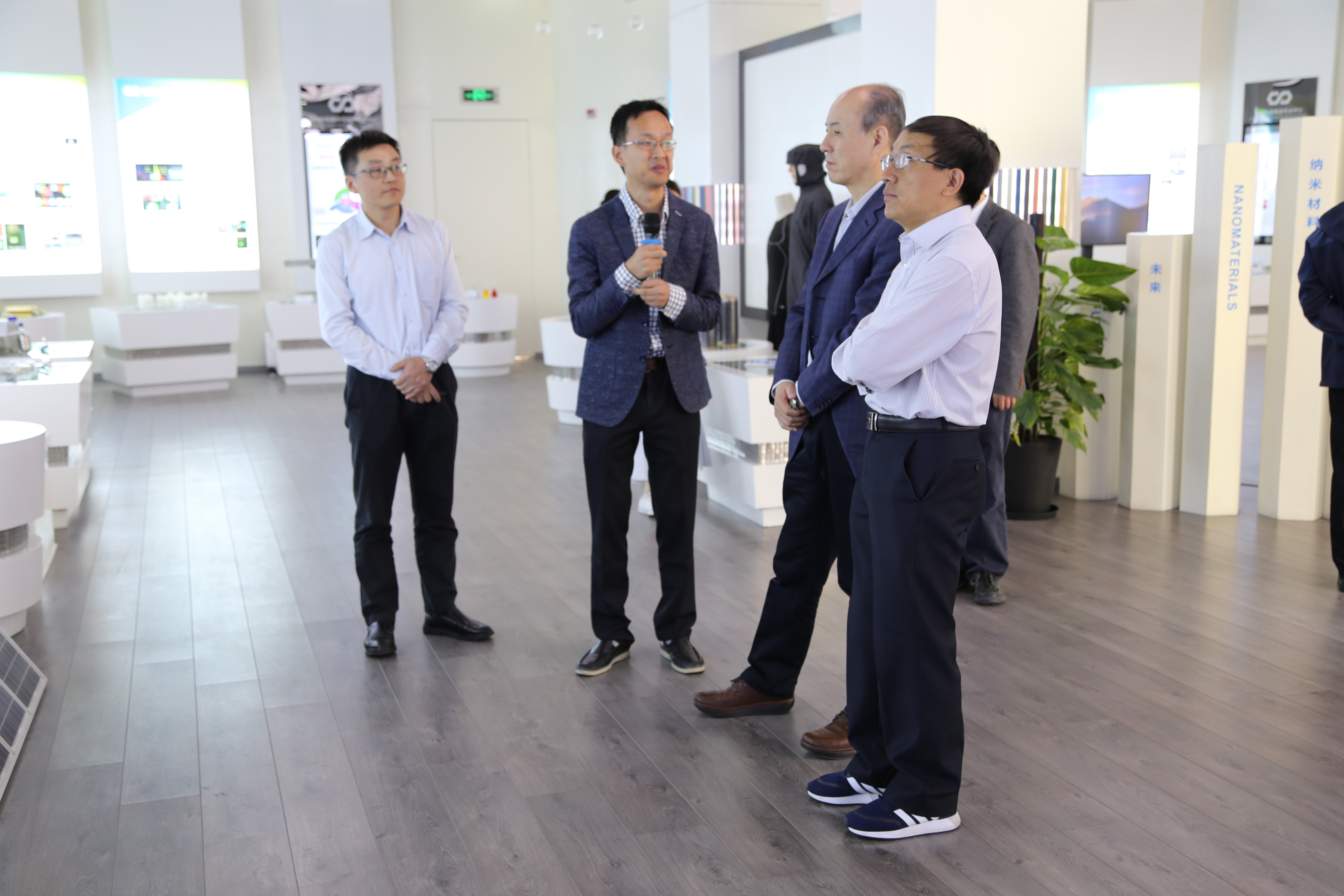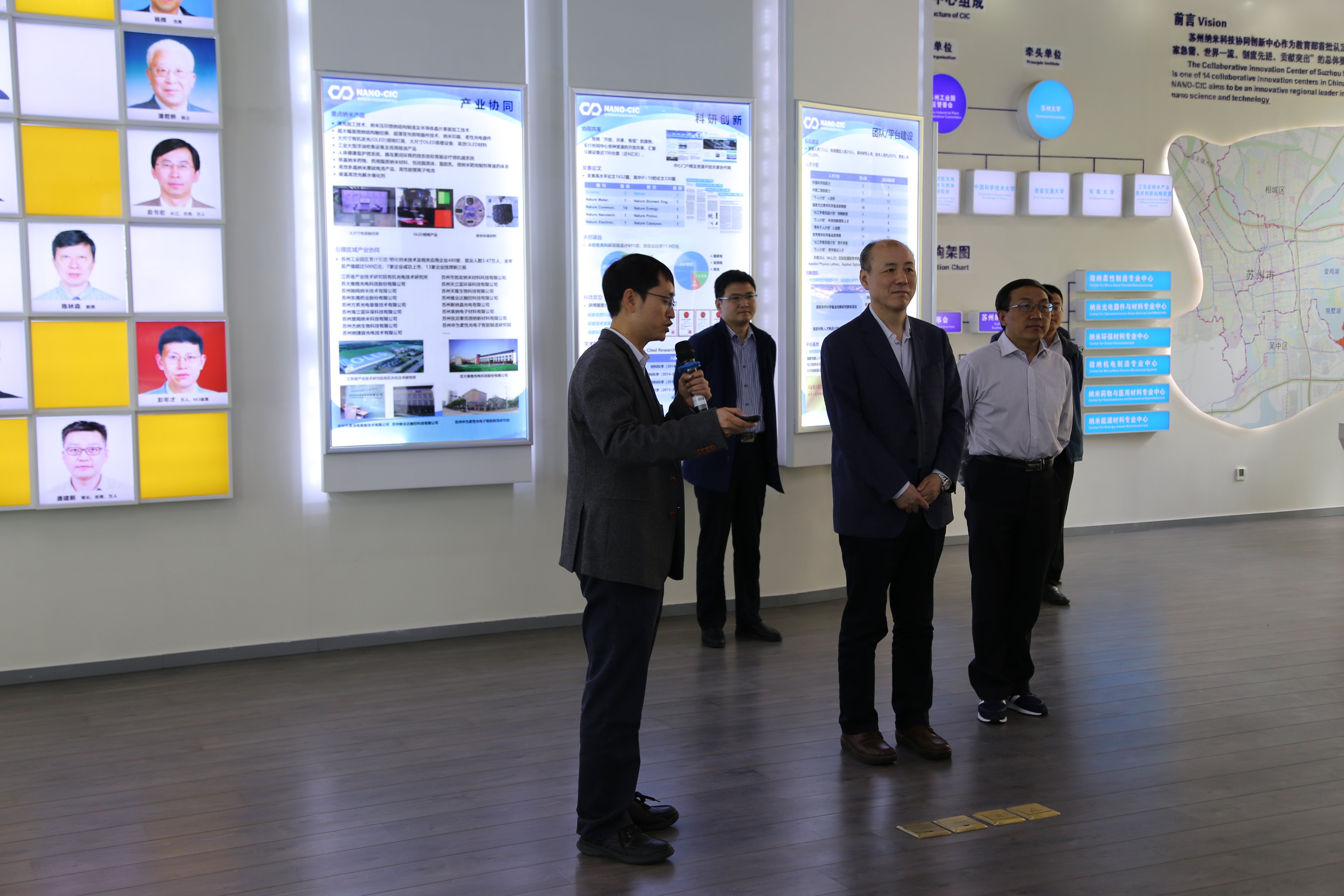 调研期间,韩宇秘书长参观了苏州纳米科技协同创新中心(以下简称“协同中心”)展厅,听取了揭建胜教授对学院科研方面的情况介绍,并详细询问了科技成果转化等情况。