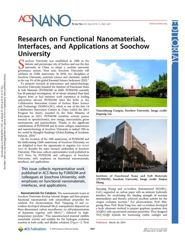 Advanced Materials和ACS Nano分别以专刊形式报道我院科研成果(Adv. Mater. 2016, 28, 47;ACS Nano 2019, 13, 2667)。