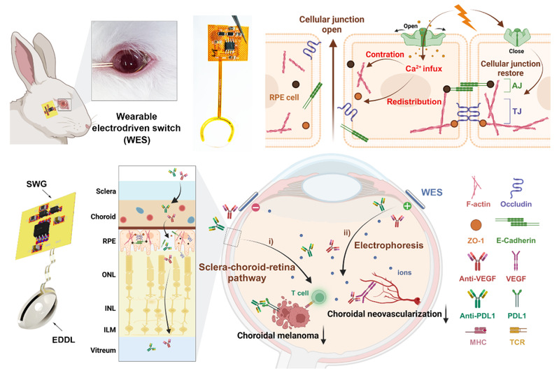 文章题目:Wearable electrodriven switch actively delivers macromolecular drugs to fundus in non-invasive and controllable manners