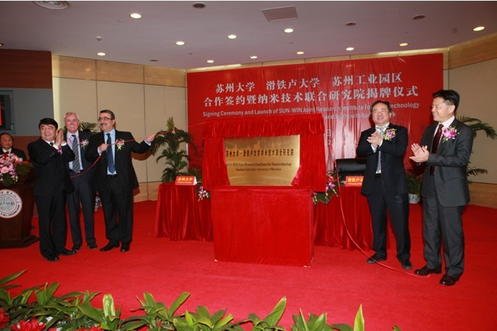 SUN-WIN Joint Research Institute for Nanotechnology was jointly established by Soochow University, University of Waterloo and Suzhou Industrial Park in 2011. It is a long-term collaboration program to promote innovation and commercialization in nanotechnology, for the purpose of joint advantages and mutually beneficial cooperation in nanotechnology. The Institute, the College of Nano Science & Technology (CNST), and the Institute of Functional Nano & Soft Materials (FUNSOM) form a ‘trinity’ organizational structure of industrialization, teaching and research.