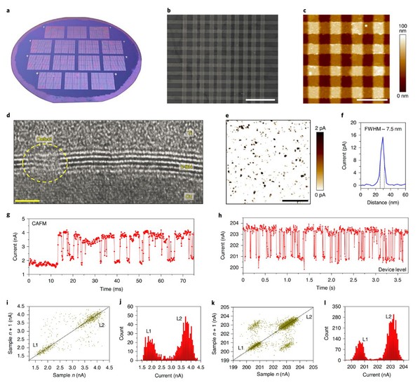 Recently, the research group of Prof. Mario Lanza published a cover article titled ‘Wafer-scale integration of two-dimensional materials in high-density memristive crossbar arrays for artificial neural networks’ in Nature Electronics. They reported the fabrication and statistical analysis of high-density memristive crossbar arrays made of 2D layered materials, and use them to model an artificial neural network for image recognition. The arrays exhibit a high yield (98%), low cycle-to-cycle variability (1.53%) and low device-to-device variability (5.74%). The devices exhibit different switching mechanisms depending on the electrode material used as well as characteristics that make them suitable for application in neuromorphic circuits. The ANNs emulated with these devices show high accuracy of 98%, and the inter-cell disturbance is very low.
