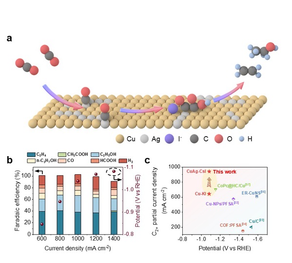 Figure 2. Iodide-enhanced CO2RR to C2+ products on bimetallic Cu-Ag.