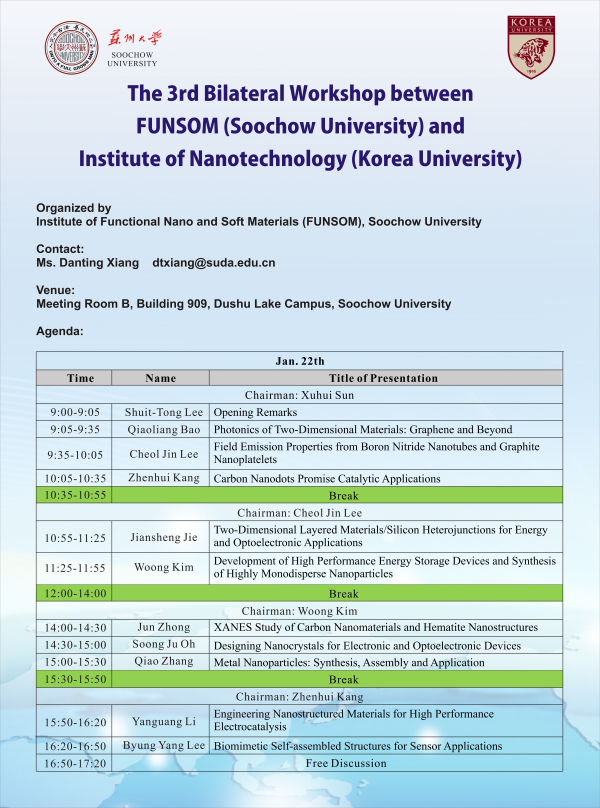 The 3rd Bilateral Workshop between FUNSOM (Soochow University) and Institute of Nanotechnology (Korea University))