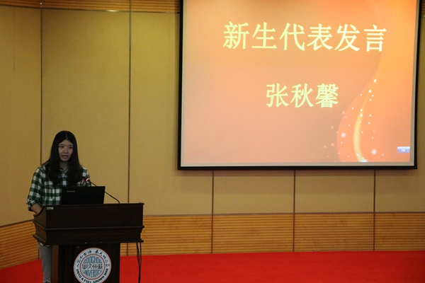 Next, the professors present all gave talks about the college and their own experience and thoughts. From English to Chinese, from welcomes to wishes, from school life to study, they provided much useful advice for the freshmen.